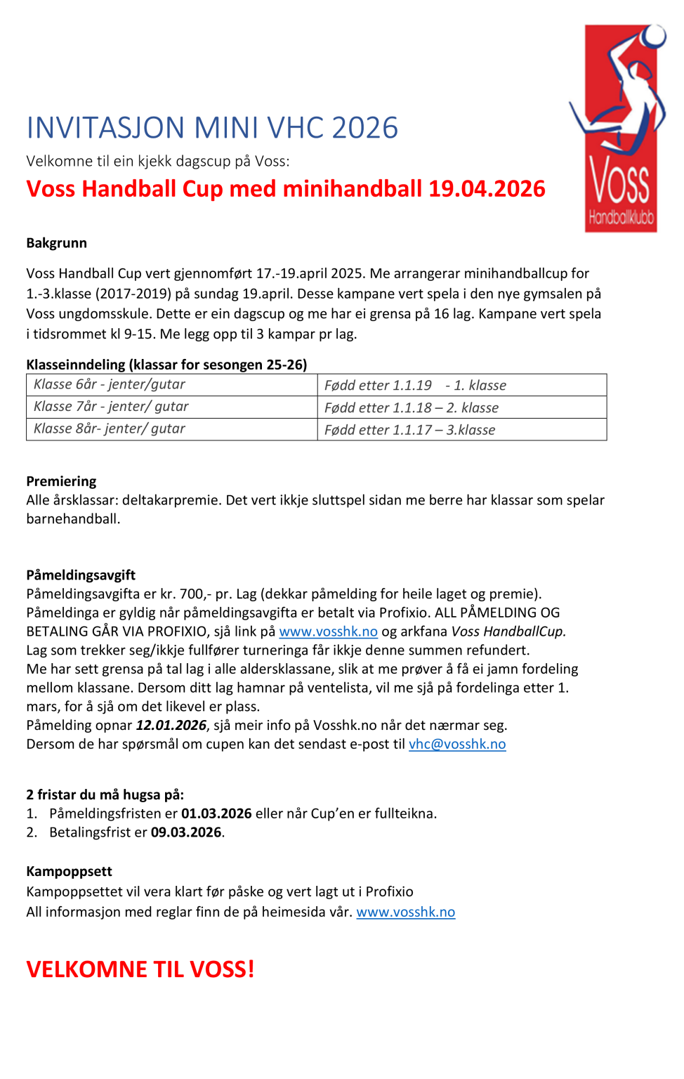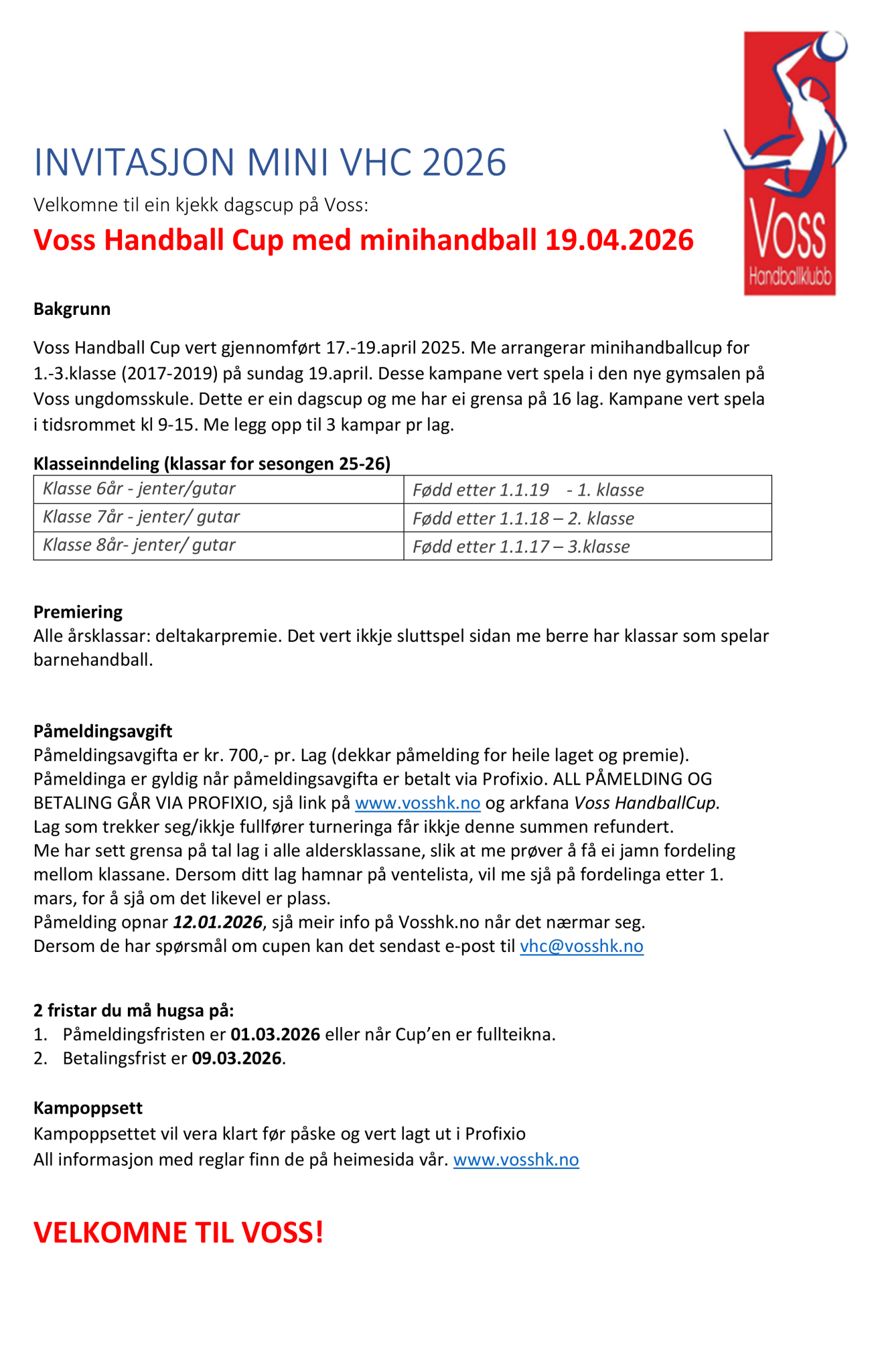 • Velkommen til Voss Handballcup